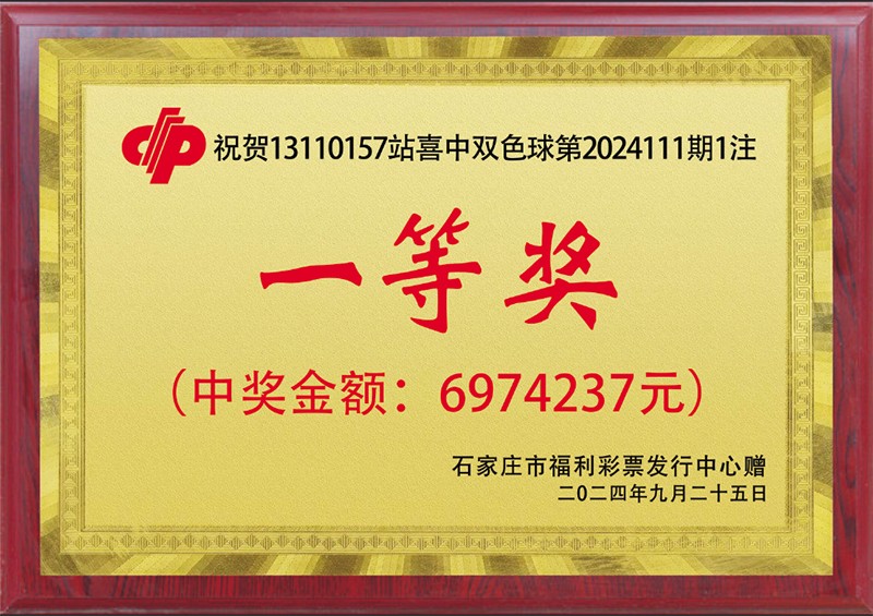 9月25日,石家庄市福利彩票发行中心专门制作了喜报和一等奖奖牌、条幅表示祝贺!