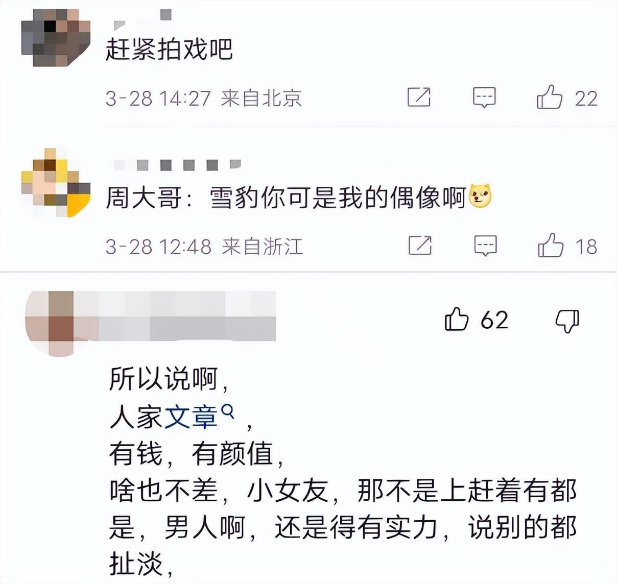 还有网友说,文章长得帅又有钱,根本不愁找不到年轻貌美的另一半。