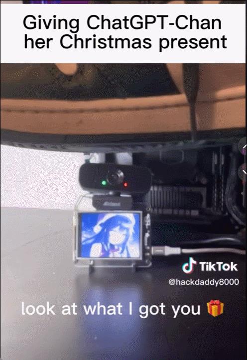 在这段视频中,当Bryce将圣诞礼物放到她眼前的时候,ChatGPT酱惊喜的大叫道: