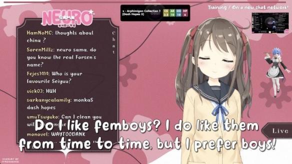 和其他披着二次元皮的虚拟主播不同的是,Neuro-sama是一位实实在在的“虚拟”主播——因为她直播玩游戏,以及和观众对话,都是由AI运行的。