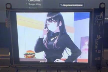 只需要一块电子屏幕,再通过编码让Stable Diffusion捕捉到ChatGPT对话中的关键词,ChatGPT酱就能够在屏幕中实时改变图像。