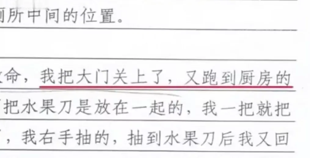 “后来我母亲出去喊邻居来救命,我又回到卧室拿了其中的一把水果刀,往我老婆后背及腰部捅。 我是跪在她旁边的,可能因为这把刀刃比较钝,我又换了另外一把水果刀捅她。捅祁可欣的时候我母亲一直在场,她直在拉我想把刀从我手上夺下去,我很烦躁,觉得她又来干涉我们的事情。虽然我妈妈在场,但是我控制不住自己。”