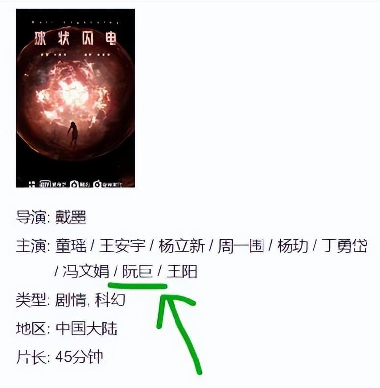 也有细心网友发现,由陈思诚监制的电影《球状闪电》演员表中,阮巨竟然是特别出演者。