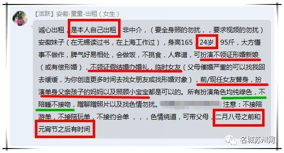 有出租自己给别人当女友,也有男子表示可以假扮男友的。