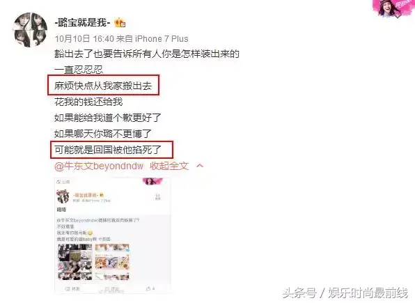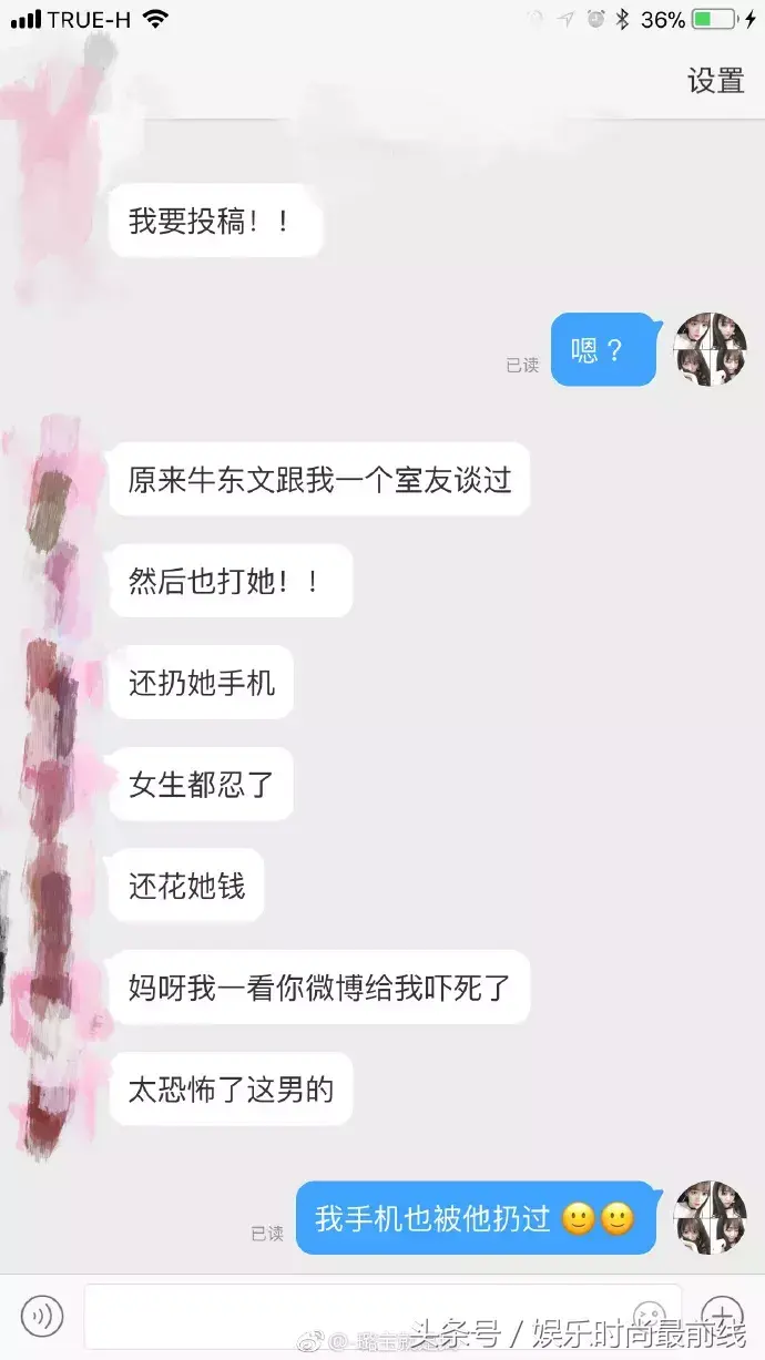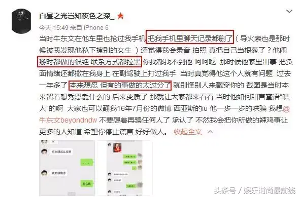 还有给王璐爆料自己的好友和牛东文在一起过,男方不止花朋友的钱还动手打人摔手机。