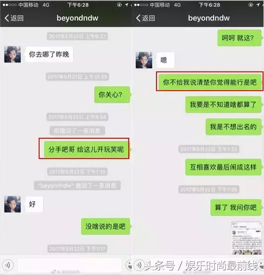 5月22号女孩察觉到了牛东文有第三者闹分手,牛东文没有极力挽回而是很冷淡的同意了。