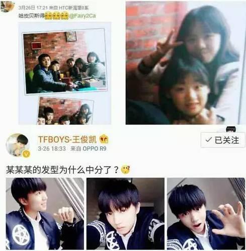 在女孩发了和朋友生日庆生图以后,王俊凯发微博调侃 “某某某的发型为什么中分了?”
