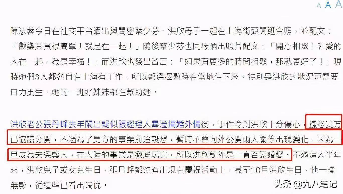 2019年的时候,两人又被曝光共处一室,而且相处了很长一段时间,当时网上还有很多关于两人交往的传闻,事件在发酵的同时,洪欣也删除了个人社交动态中与张丹峰相关的。