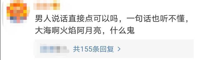 有人也在底下评论:“男人说话直接点可以吗,一句话也听不懂,大海啊火焰啊月亮,什么鬼”,