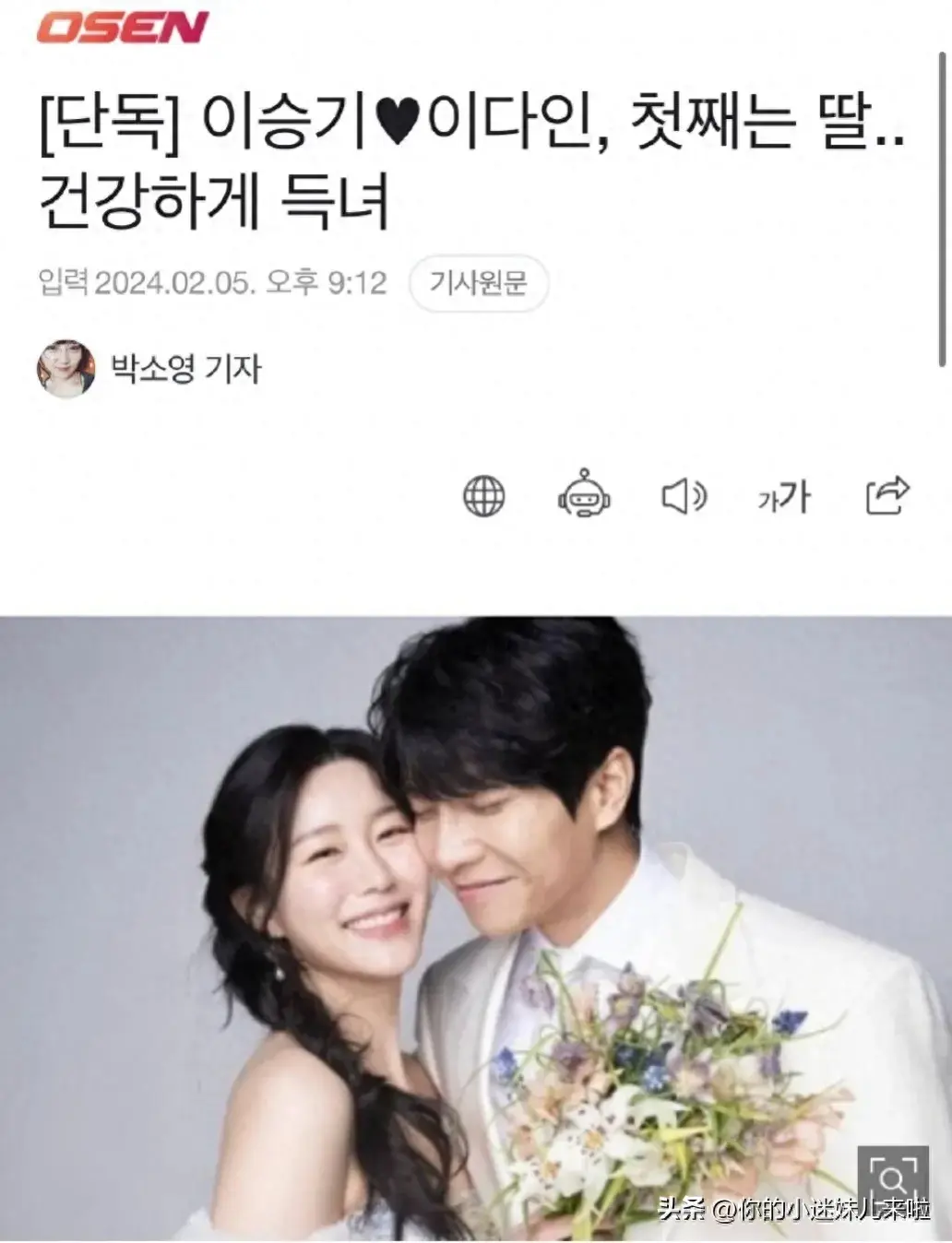 近日韩国艺人演员李昇基官宣得女,迎来了他们的第一个宝宝,目前也是母女平安!