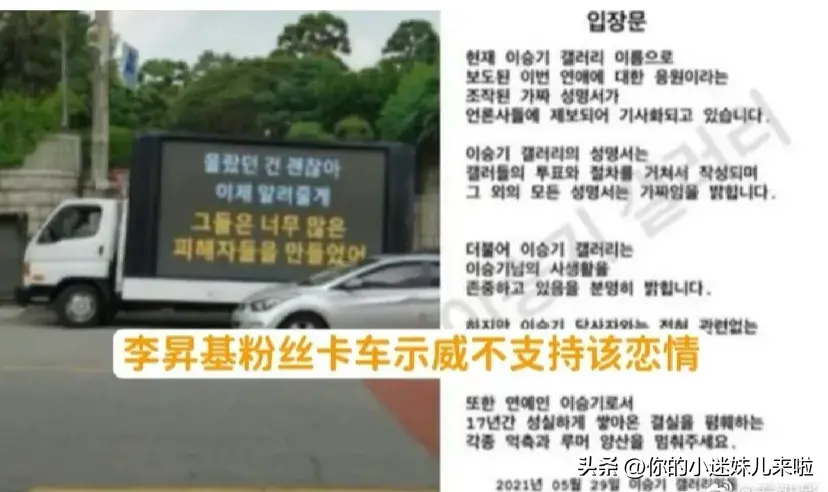 李昇基粉丝示威不支持该恋情