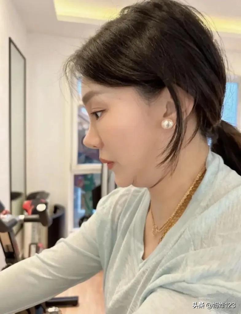 孟佳欣的心态也很好。她在镜头前露出双下巴。她的皮肤很白皙,脖子上戴着一条很粗的金链子。