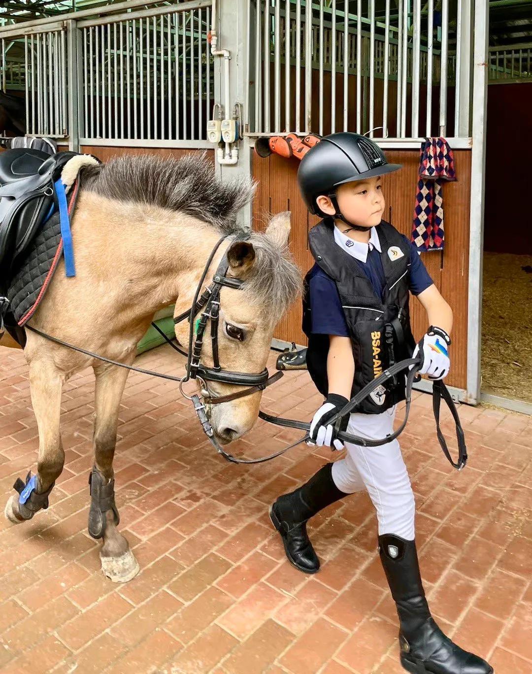 他们7岁半的儿子也教育的十分优秀,精通骑马、各种乐器、下棋,特别擅长游泳,超高的颜值完美遗传了父母的基因。