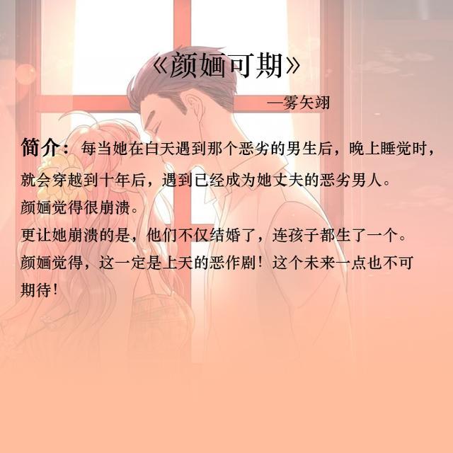 短书评:挺有意思的,看的挺欢乐。女主可以在未来和现在穿梭,白天是17岁的年纪,但每次一见到男主后睡一觉醒来就会穿越到27岁,那个和成年男主结婚并生了包子的世界。男主毒舌闷骚傲娇,慢热的小甜文。