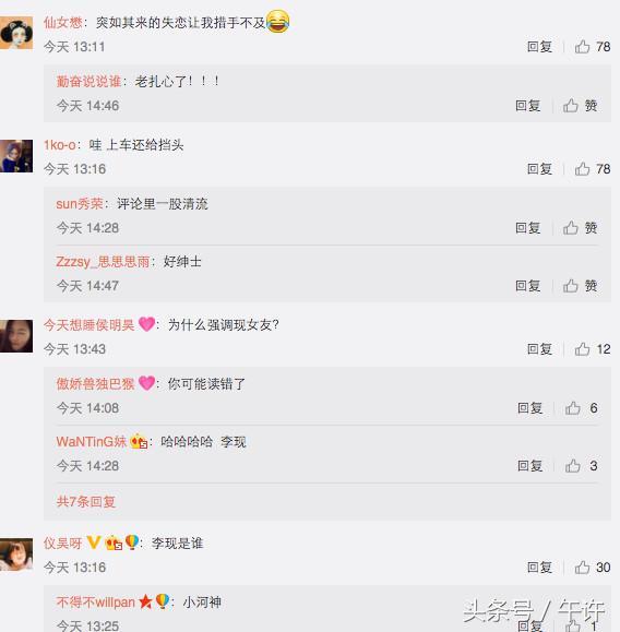 有的粉丝就表示伤心,“老扎心了!!!”“为何强调现女友?”“这个女生是张雨薇啊 好美丽的”“女的是我们高中校花耶”“怎样没有经过我赞同就把我的照片发布出来???不就跟我男冤家吃顿饭嘛!有必要这样少见多怪??!!!”