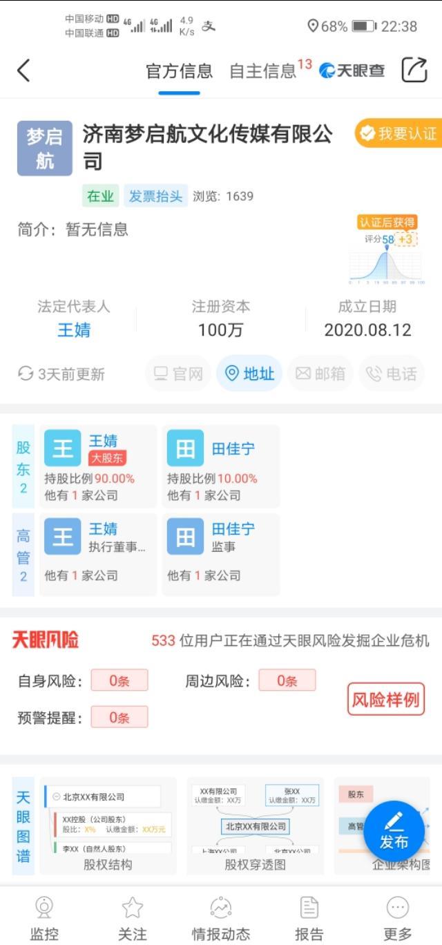 随后米菲在济南注册公司的消息也被曝出,在天眼查上能够搜索到济南注册的公司,注册时间为2020年8月12日。