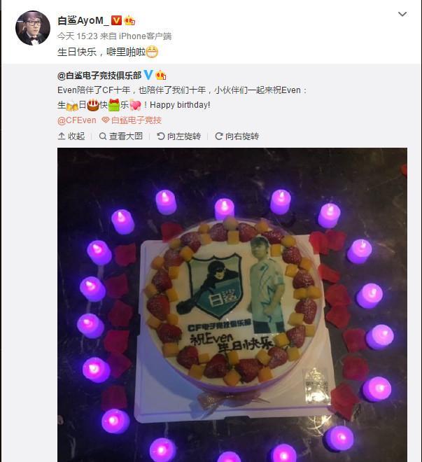 5月7日是白鲨队员EVEN的生日(貌似和Faker同一天),白鲨官博晒了一波照片,白鲨予以转发