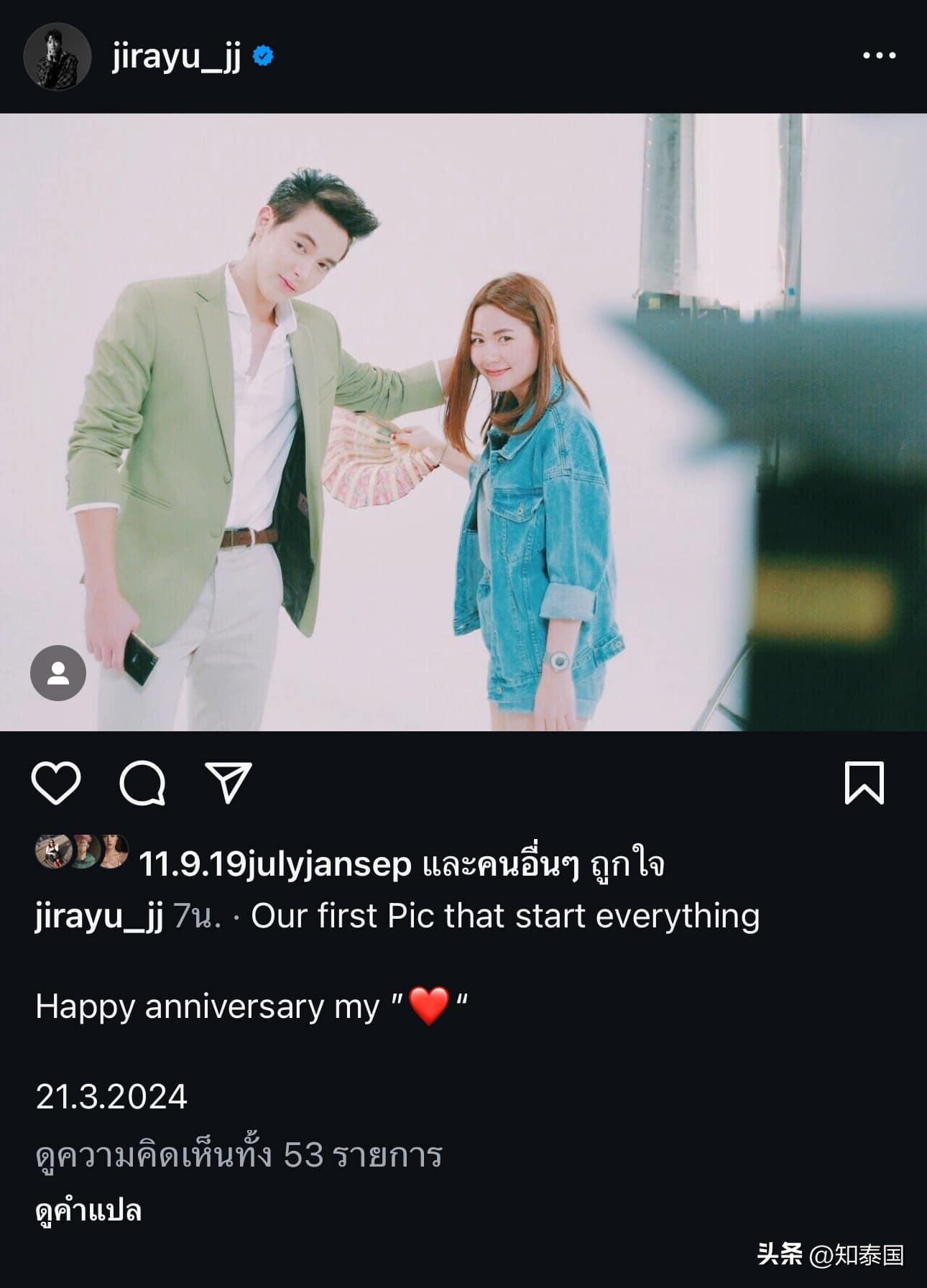 据泰媒消息,3月22日,泰国知名男星Jamesjirayu在个人社交账号发布动态,庆祝与女友Foam交往周年纪念日。James在动态中晒出与Foam的一张旧照告白并标记了对方,他写道:“我们的第一张开始一切的照片,周年纪念日快乐,我的爱人!2024年3月21日”。
