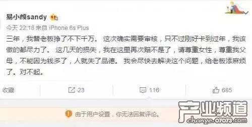 随后刘珊珊也在微博表示了公司的此次亏损。
