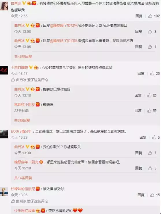 曲肖冰昨日的微博发声要出家,此话题引来热议称其炒作。曲肖冰今日再次更新微博为自己证明已出家,速度极快说到做到啊。