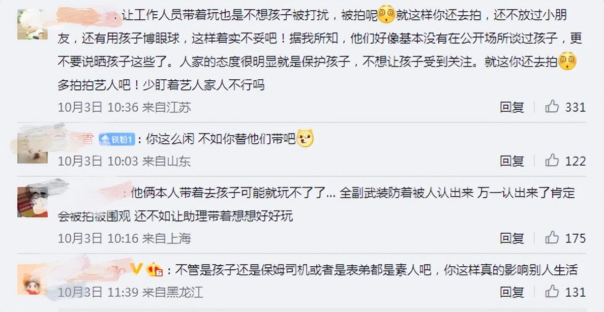 很多网友则表示,冯绍峰和赵丽颖之所以没有现身,是因为不想孩子被过多的打扰,而且他们带孩子的话,根本玩不了,一不小心就会暴露,被围观,所以才会让助理带孩子玩,并没有其他的理由。