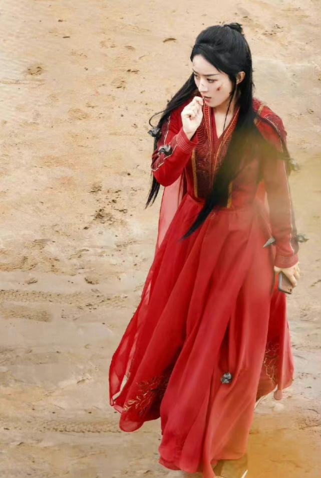 赵丽颖生日当天,还流出了一组她在片场拍戏的路透照,照片中的赵丽颖一身红衣,搭配战损妆,又美又飒。