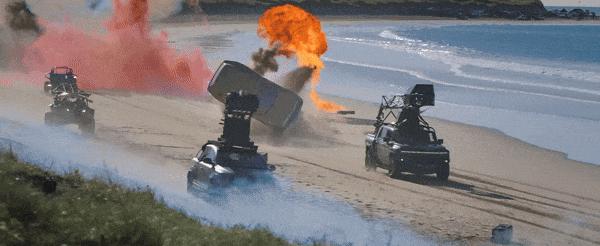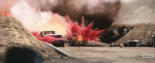 "气爆翻车"(Canon Roll)是汽车诞生之后就出现在大银幕上的"传统特技"。它的原理是:给汽车某个特定部位(通常是车底)加装气泵,在经过精确计算的时间点给汽车加压,让车子开始翻滚,从而达成翻车的效果。