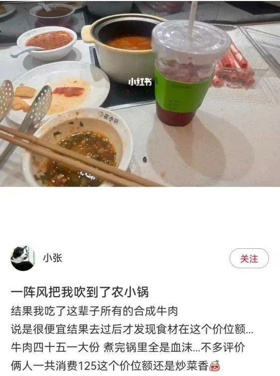 打着 " 在外吃好饭,就选农小锅 " 招牌的农小锅,被网友诟病其菜品种类少," 除了蔬菜没什么可吃的 "," 还不如吃麻辣烫 "。