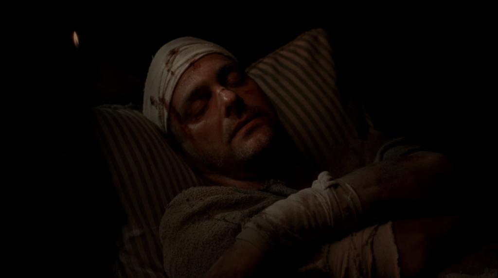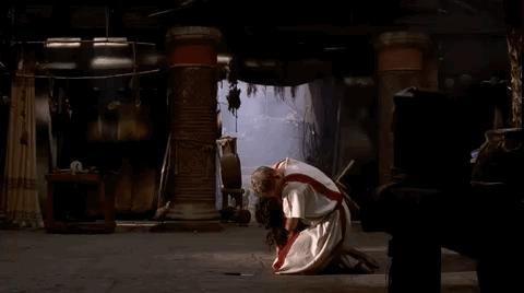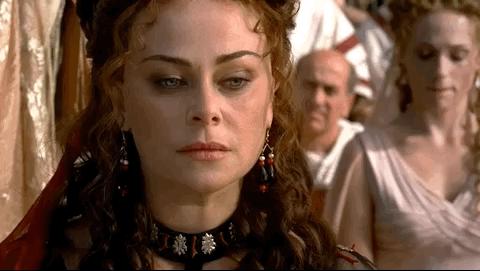 在布鲁图斯被屋大维处死后,塞维莉亚跪在阿提娅门前。
