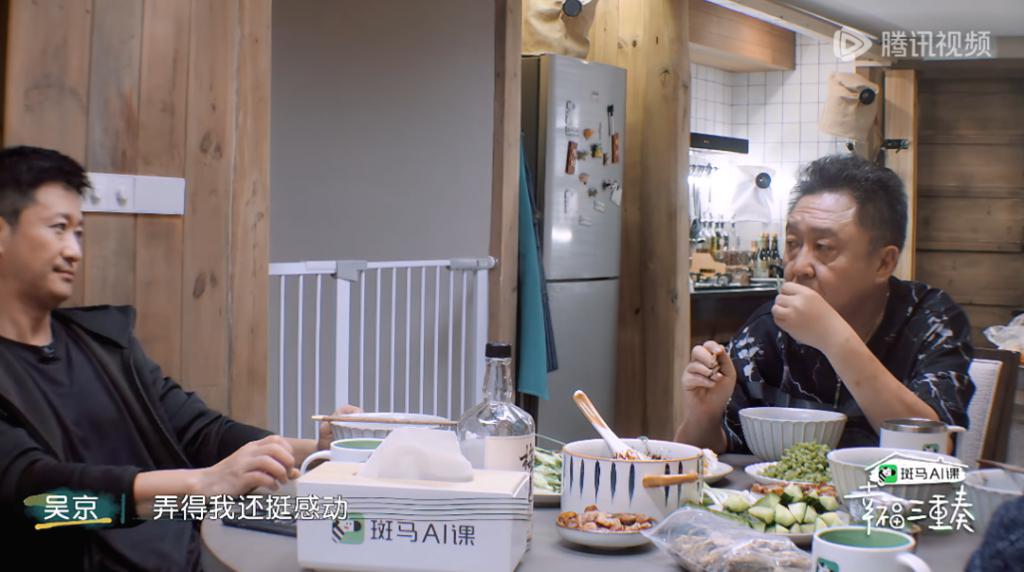 但吴京将煮好的面拿到桌上,先吃了起来。