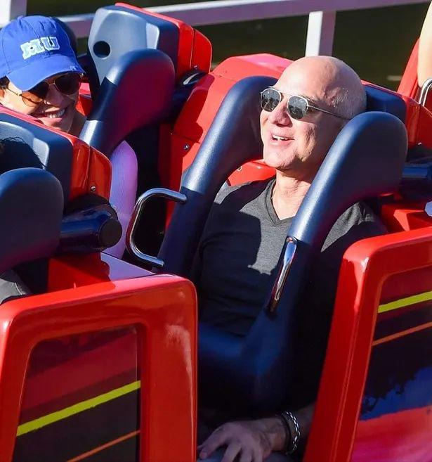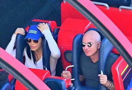 活力满满的桑切斯还真带贝佐斯去迪士尼玩了,富豪看上去有点紧张;