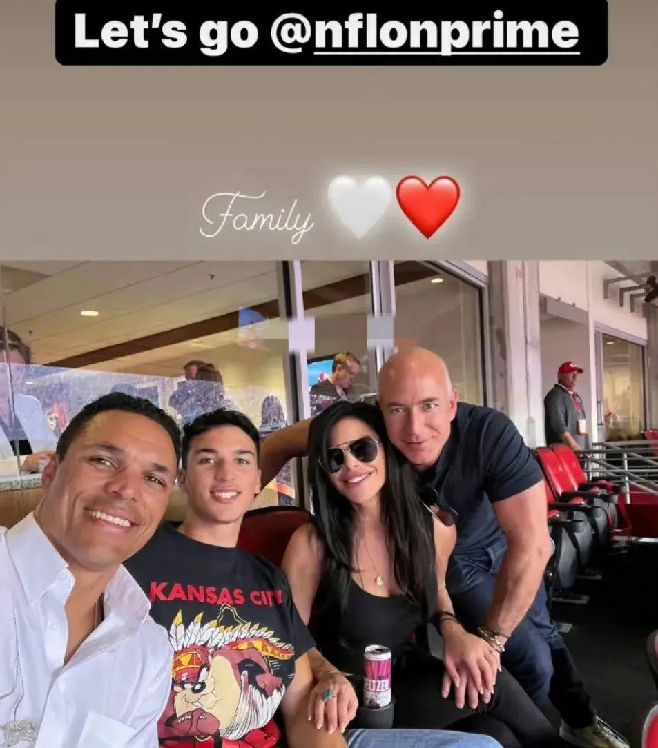 贝佐斯与这位前任好像特别投缘,之前还一起去看橄榄球赛。桑切斯在社交媒体上发合影,配文:Family。