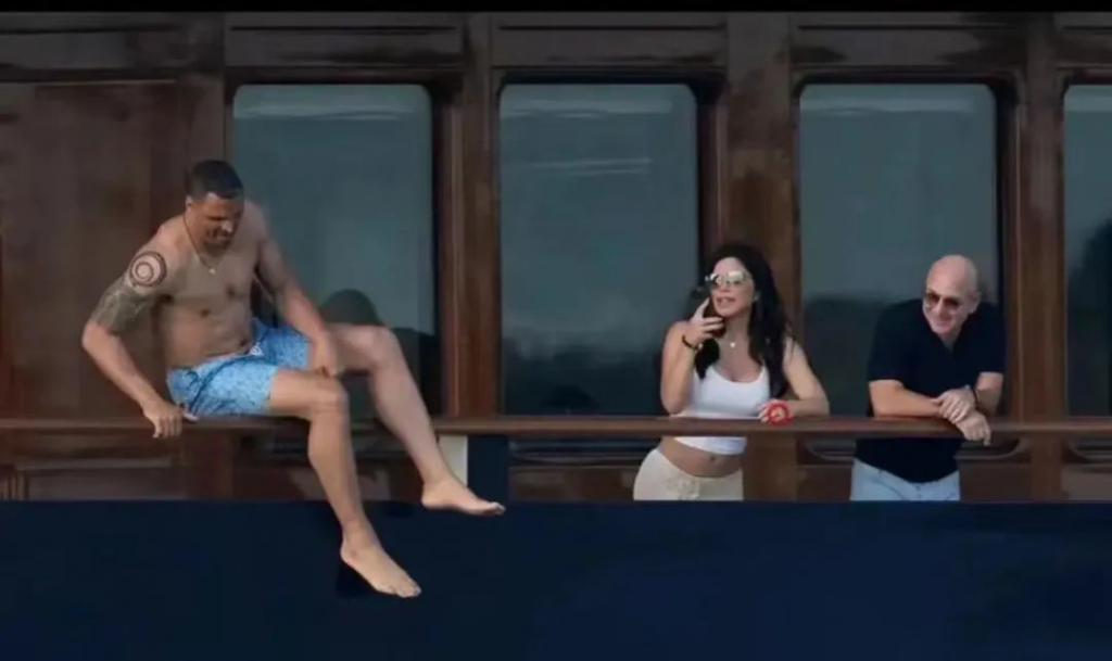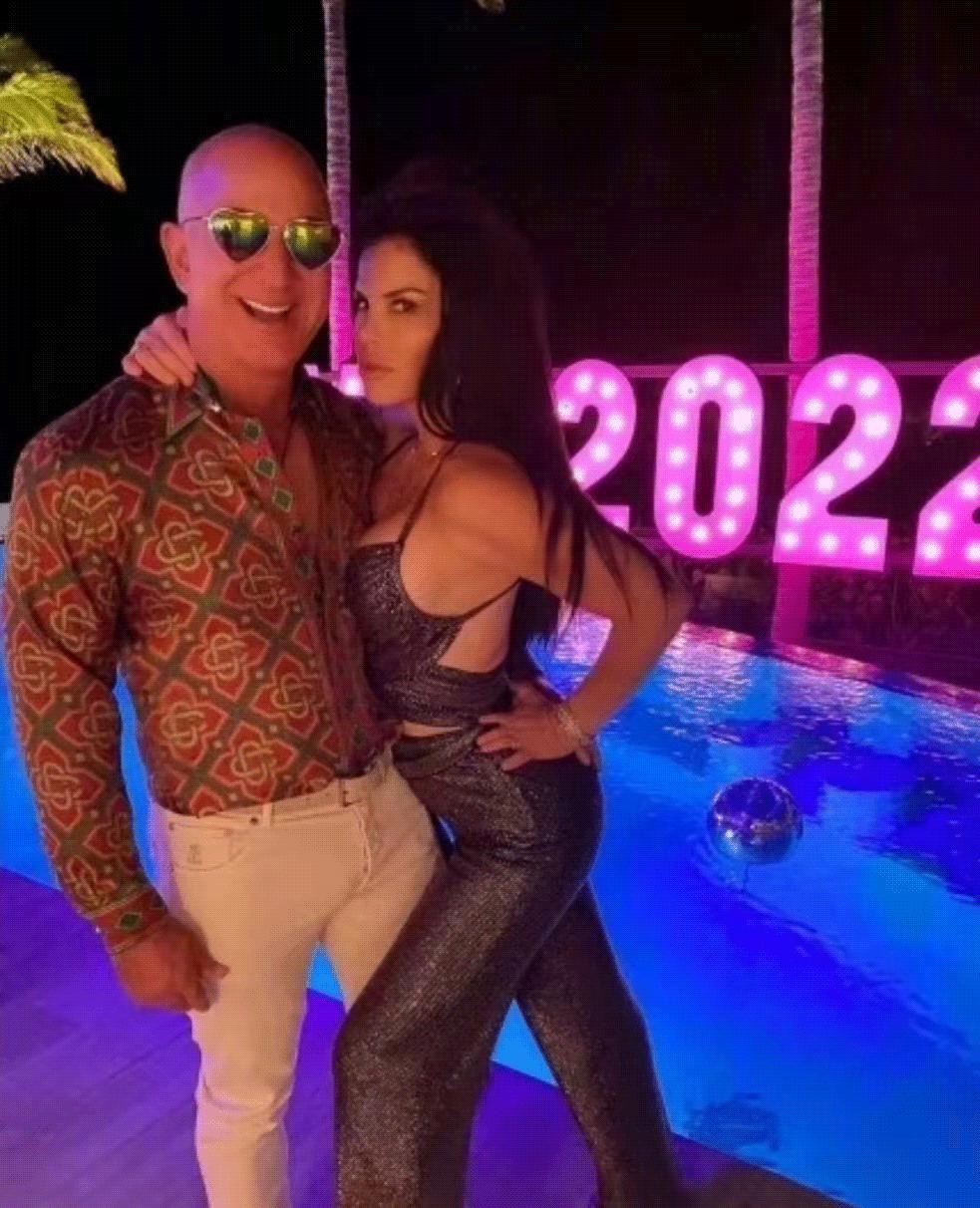紧身花衬衣、心形墨镜,老富豪化身摇滚青年。年轻 5 岁的桑切斯带给老贝的新鲜感恐怕比很多年轻 20 岁的带给他的更多。