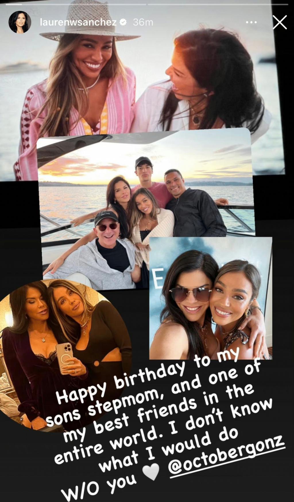 October 生日,桑切斯在社交媒体上发布两人的亲密合影,以及两家陪儿子出行的照片,配文是" 祝我儿子的继母也是全世界我最好的朋友之一生日快乐,我不知道没有你我该如何 "。