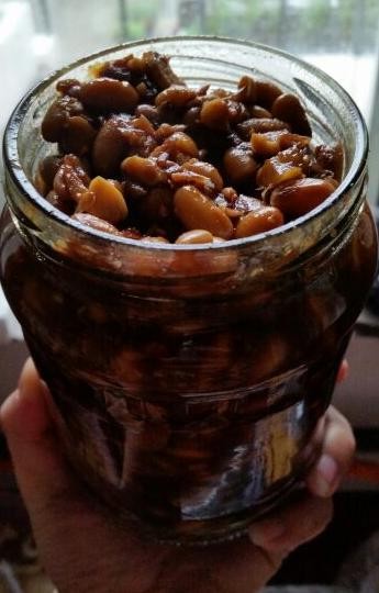 煮到上面有一层油,然后我们就可以捞出放在盘子里放凉,接着把做好的香菇黄豆酱放在杀菌消毒过的容器中密封保存,当然上面还可以放一层白酒再密封,这样保存的时间会更长,就算放一年都没问题,当天做当天就能吃,是不是很方便简单呢?完全不用发酵,而且吃过之后都会喜欢的,我老婆在孕期能喜欢吃这个东西,对于我来说还真是福音般的存在啊,因为很多东西她一吃就反胃不舒服,现在每顿饭都会搭配着一些黄豆酱来吃,这样食欲大开,我也放心多了。