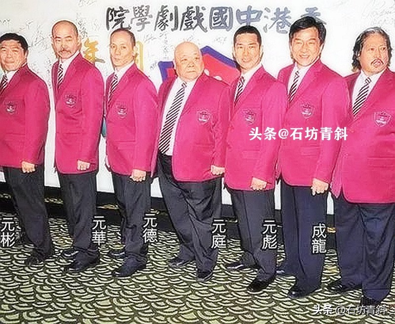 前右一为元彪,后右一带帽为成龙,后右二为元华