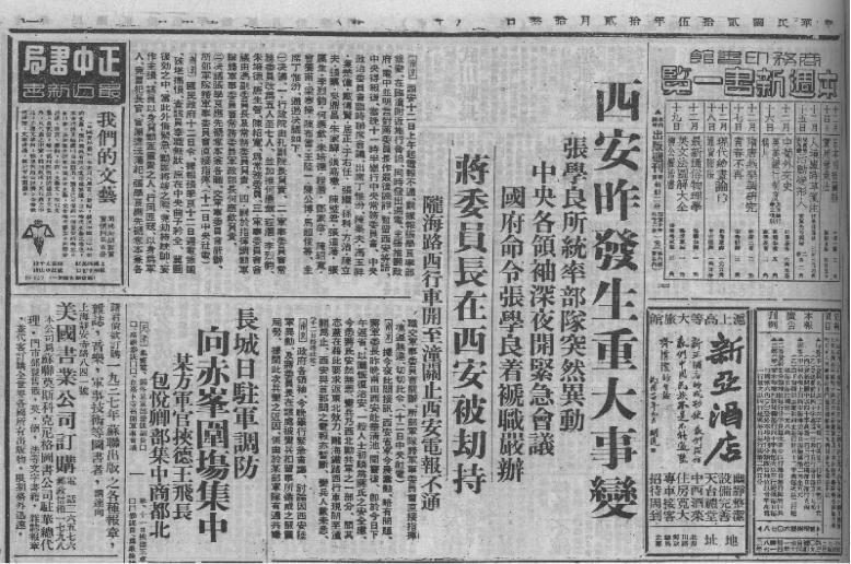 (当年报纸上关于“西安事变”的报道)
