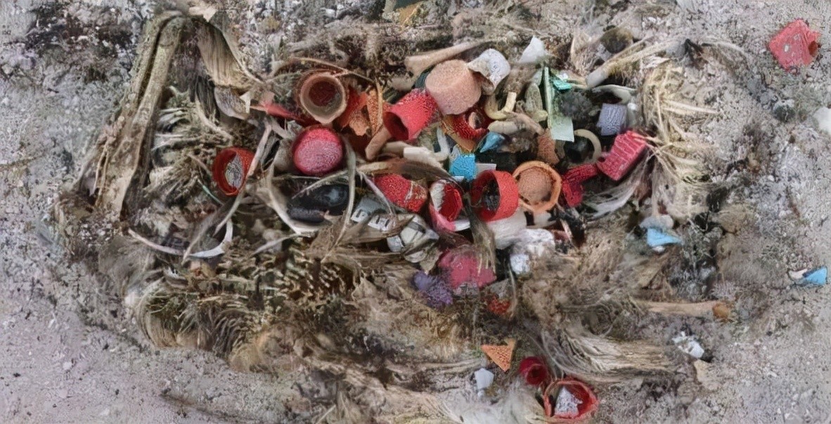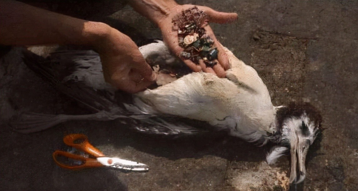 而且信天翁妈妈也会把海洋垃圾当作食物,拿去喂食信天翁宝宝,营养不良、胃穿孔等因素,扼杀了信天翁宝宝的长大。