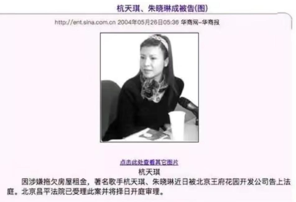 2004年,王府花园开发公司把杭天琪告上法庭,原因是拖欠房屋租金。