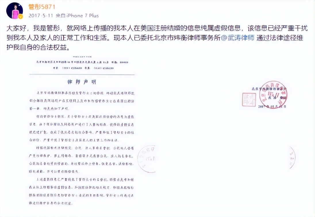 第二天管彤就发布声明,宣布了自己早就结婚的消息,还晒出了一家人的合照来打破谣言。