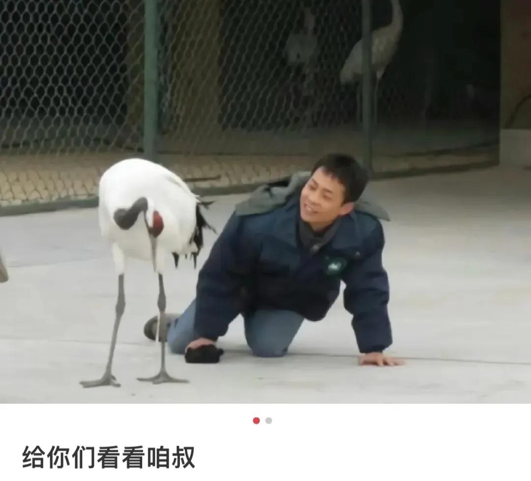 他瞅个鹤,直接双膝跪地,面带傻傻的微笑,仿佛“地主家的傻儿子”第一次出来见世面。