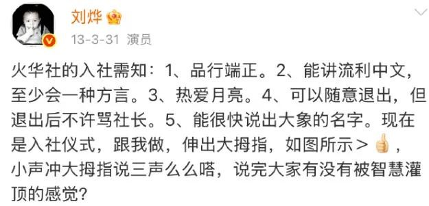 他还将自己的名字“烨”字拆开,组建“火华社”,极力拉拢粉丝加入,而自己担任社长。