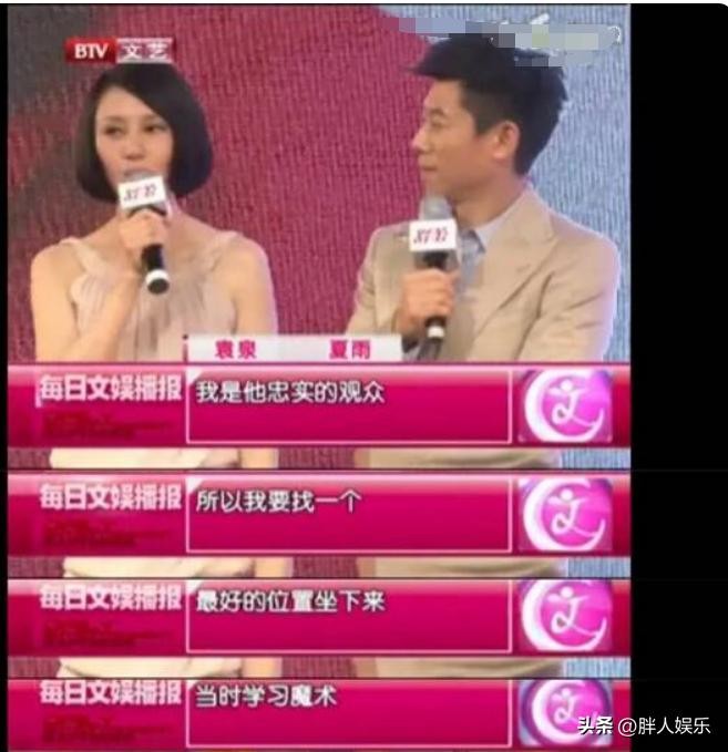 成名之际,夏雨也和袁泉有过一次合作,一起出演《上海巴比伦》,在接受采访时,袁泉难掩对夏雨的崇拜,声称自己一直都是夏雨的影迷,而夏雨,也不失时机地秀了一把恩爱,表示自己不敢看袁泉演的戏,因为看完后会不自信,侧面猛夸袁泉的演技。