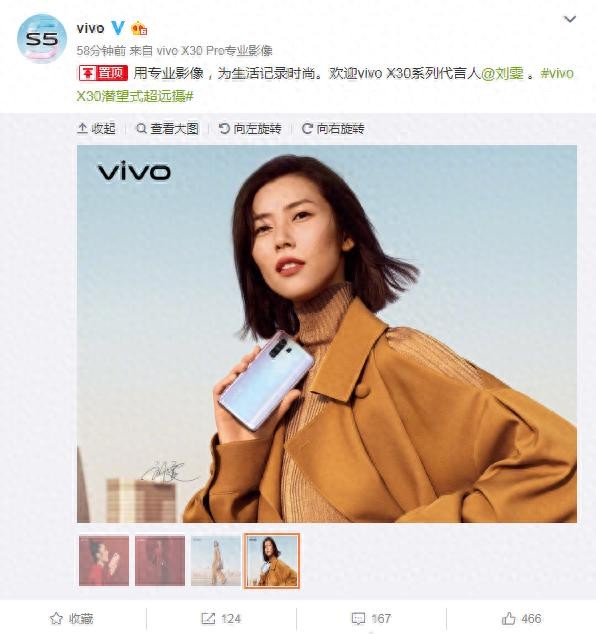 vivo在前一段时间就传出了消息,旗下第三位5G新成员vivo X30系列会在12月份跟大家正式见面,而就在近日,这一系列手机的形象代言人也官宣了,将由大表姐刘雯来担任。这一点倒没有让大家觉得意外,因为大表姐刘雯之前担任了vivo X27系列手机的代言人,这次继续拿下vivo X30系列手机的代言,可见vivo对她的喜爱与认可。