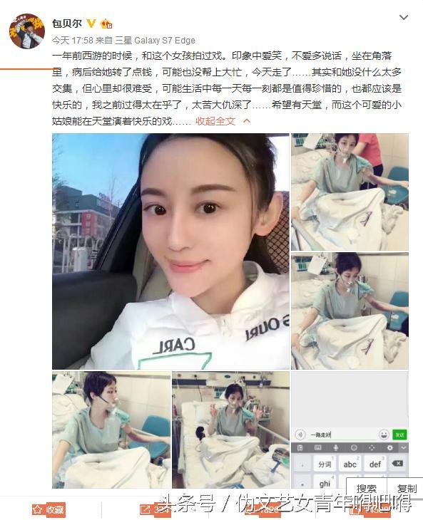 包贝尔在微博发文感慨,小姑娘爱笑,希望在天堂演着快乐的戏。