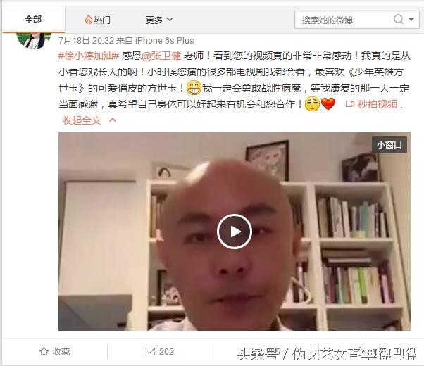 七月中旬的时候,张卫健还曾专门录制视频送给徐小婷,让她积极面对,相信癌症是可以治好的。