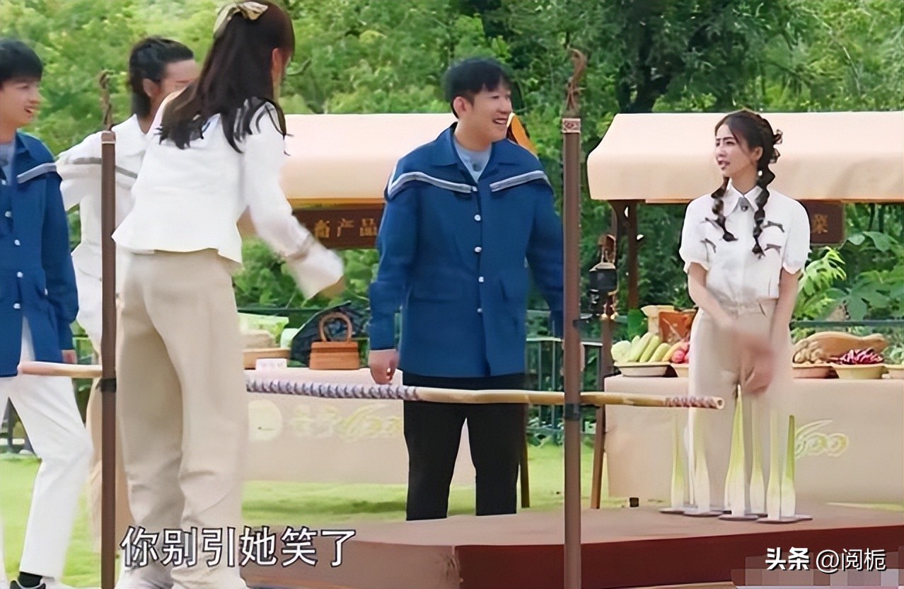 其中一个环节内容是跳过横杆,保证垫子上的茭白稳定不倒,前面杨颖和周深、白露几位体重较轻的人完成得很困难。