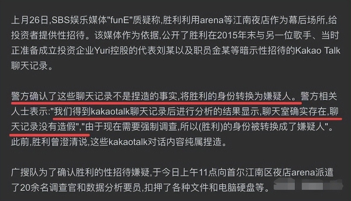 经过深思熟虑,姜记者报道了一篇李胜利在夜店为投资人提供性招待等的文章。