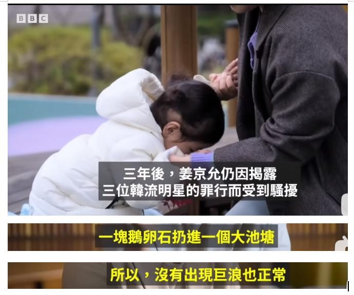 BBC也出了一部名为《下Y、X侵和羞辱——揭露韩流明星聊-天室里的秘密》的纪录片,揭露了围绕着李胜利、郑俊英、崔钟训下药性侵女性等一系列令人触目惊心的X侵和羞辱事件。