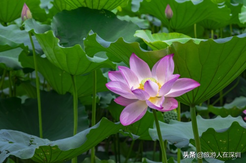 第一种,看荷花,深圳市民常说,秋天就去东湖公园看菊花,夏天就去洪湖公园看到荷花。洪湖公园的湖面分洪湖、静逸湖、莲香湖,都种植荷花、睡莲、王莲及多种水生花卉,每逢盛夏,百亩湖塘,荷花怒放,蔚为壮观。